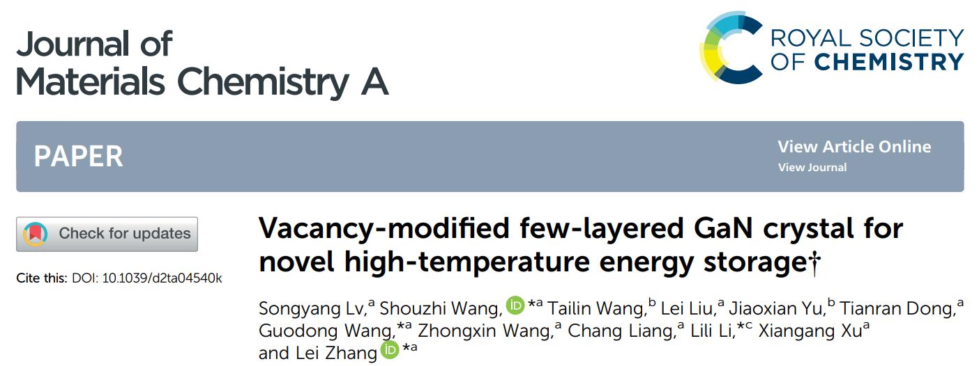 氮化物任务组,实现了GaN晶体储能器件在150℃高温环境下稳定工作。研究成果以“Vacancy-Modified Few-Layered GaN Crystal for Novel High-Temperature Energy Storage”为题,发表在国际期刊Journal of Materials Chemistry A (IF:14.51)上。博士生吕松阳为第一作者,王守志、王国栋、张雷为共同通讯作者,成人视频